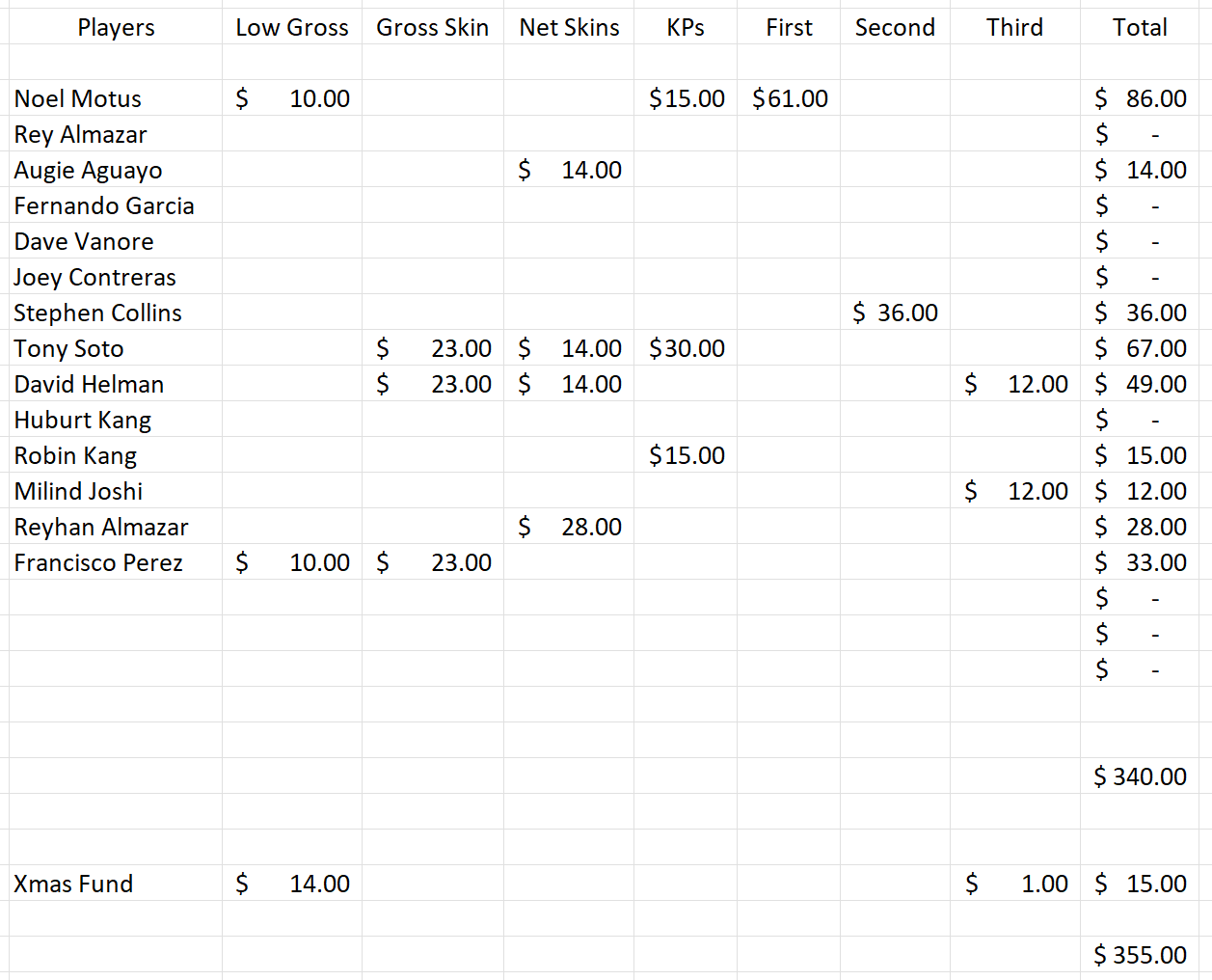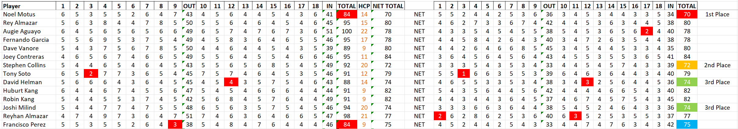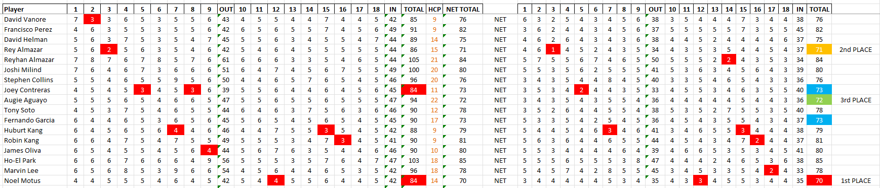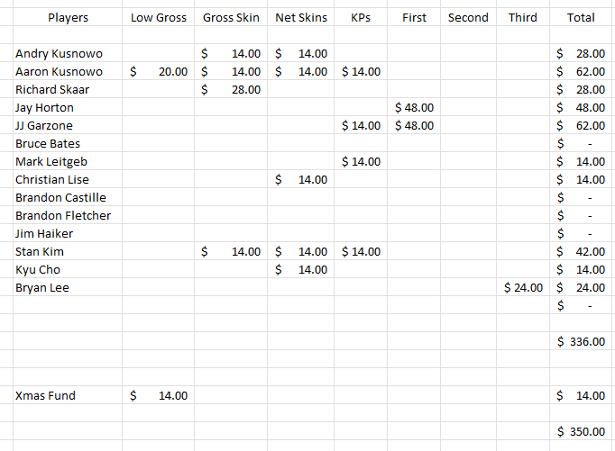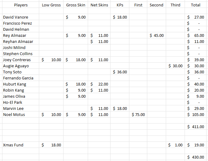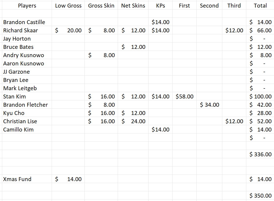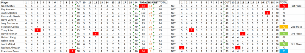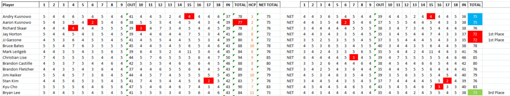 A special thank you to our Club President Andry for making it possible. His wife worked the sign-in table for us to get things going with the sleeve of balls and lunch tickets on Saturday morning. Without him and his family’s help, this Club Championship would not be possible.