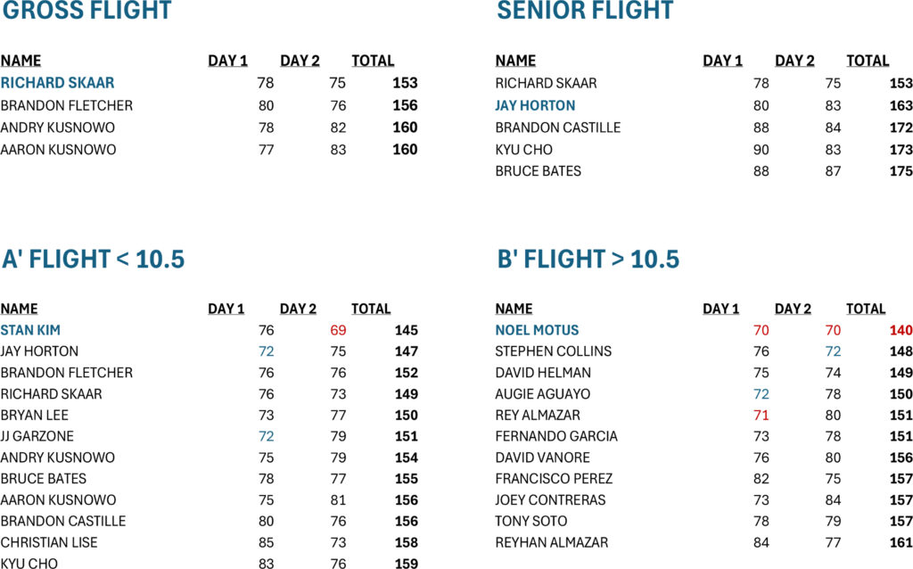 Congratulations to our Club Champion Richard Skaar! He shot gross scores of 78 on Saturday and 73 to seal the win on Sunday