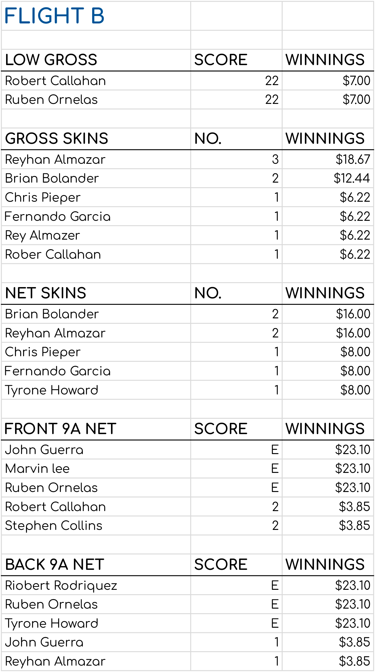 total winnings