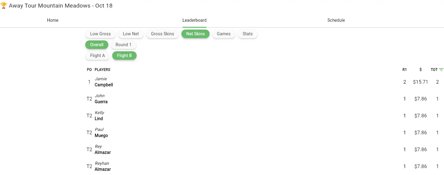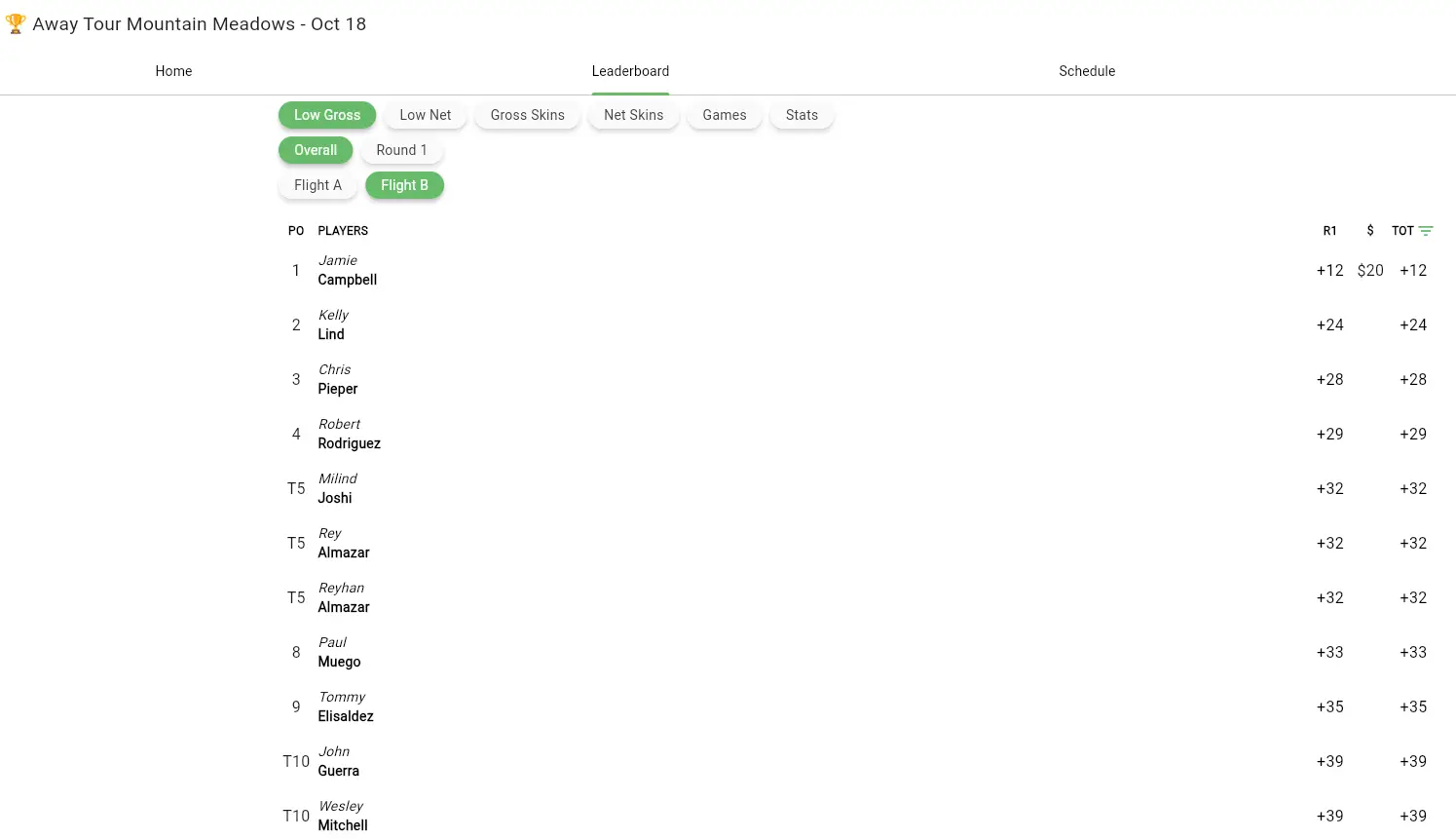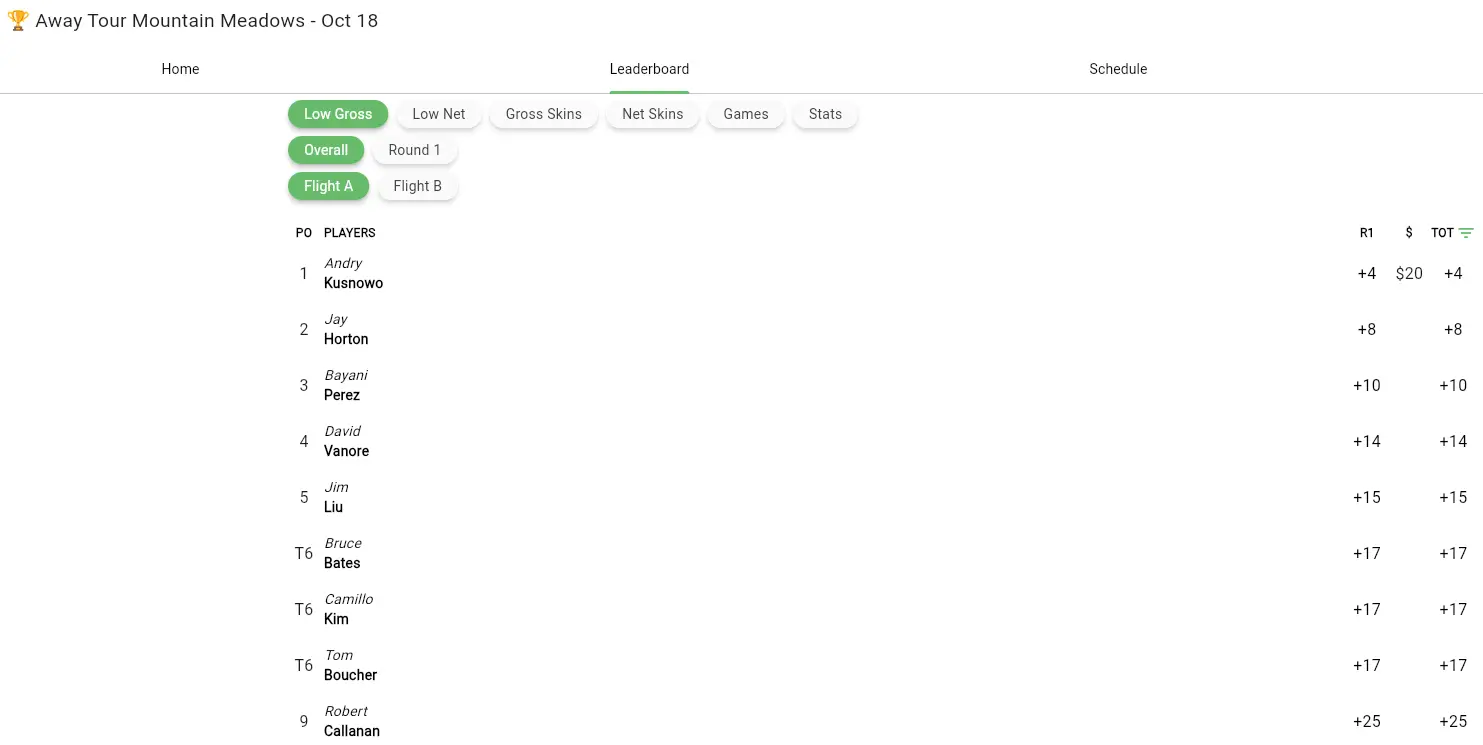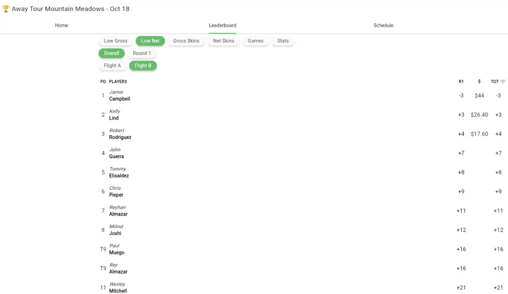 October 18 Away Tournament Mountain Meadows