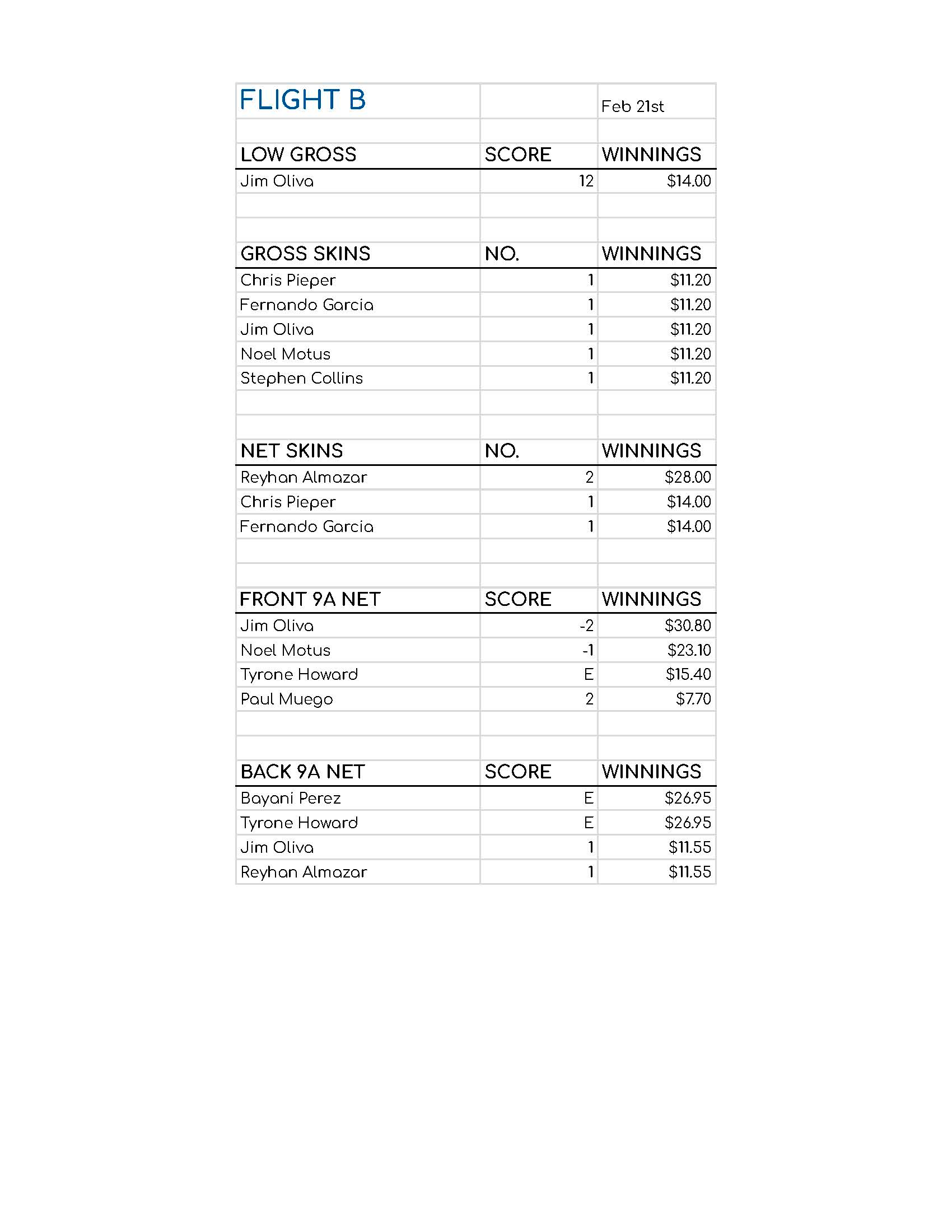 Flight B Results